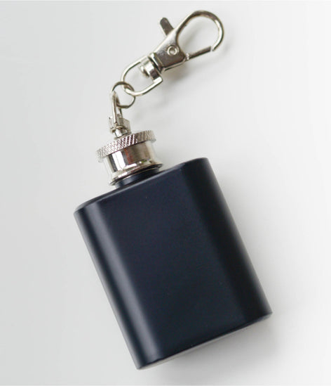 Our 1oz mini hipflask keyring is made of steel and has a black coating, meaning your engraving appears silver. This personalised mini hipflask is perfect for any occasion, Father's day, birthday's, or maybe you just...