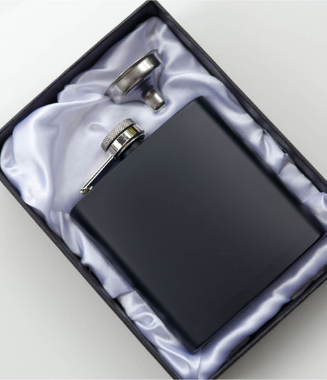 Our personalised 6oz black hipflask is steel with a black coating and supplied inside a satin lined gift box, which also includes a funnel. Perfect for any occasion such as birthdays, father's day, and weddings,...