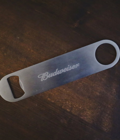 Our engraved brushed silver bar blade bottle opener is made of stainless steel. We engrave this using our diamond blade, so your etching with come out in a subtle silver colour. The bar blade can...