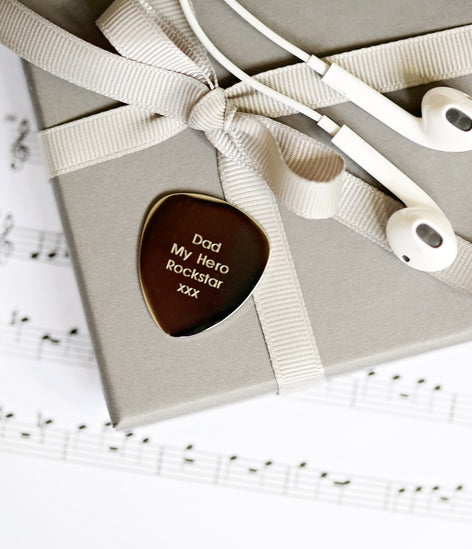 The perfect engraved gift for all musicians and guitar lovers. Made from 316 polished stainless steel, this engraved guitar pick comes inside a gift box with a satin ribbon.We will engrave this with a modern font...