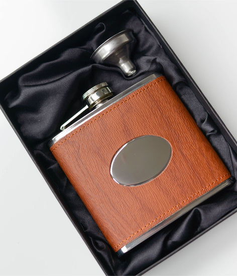 This 6oz Medium Wood Pu Leather Covered Hipflask has an oval engraving space on the front, making it great to engrave names, initials or dates. Supplied in a satin lined giftbox with funnel, this engraved...