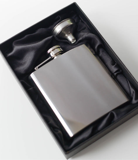 A shiny silver 6oz hipflask that is supplied inside a satin lined gift box, which also includes a funnel. Whether it's for a birthday, Father's day, or a wedding, this personalised engraved hipflask is sure to leave...